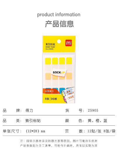 得力索引標(biāo)貼 25905 小號(hào) 單位:8張/包