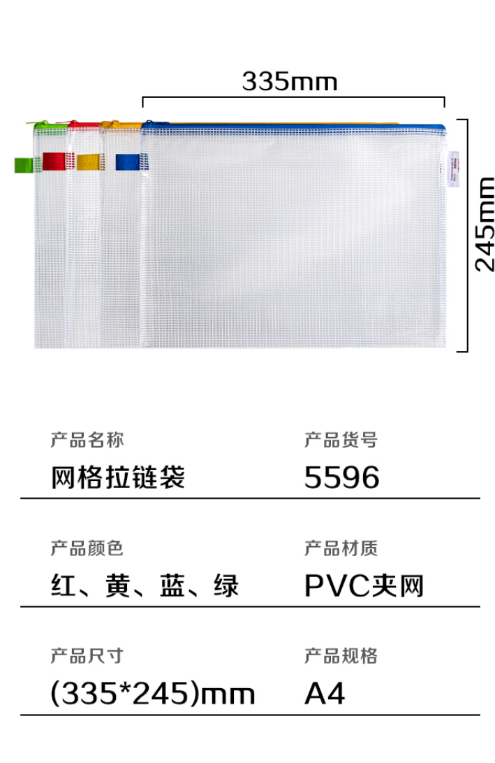 得力網(wǎng)格袋 A4 5596 混色 單位:個(gè)