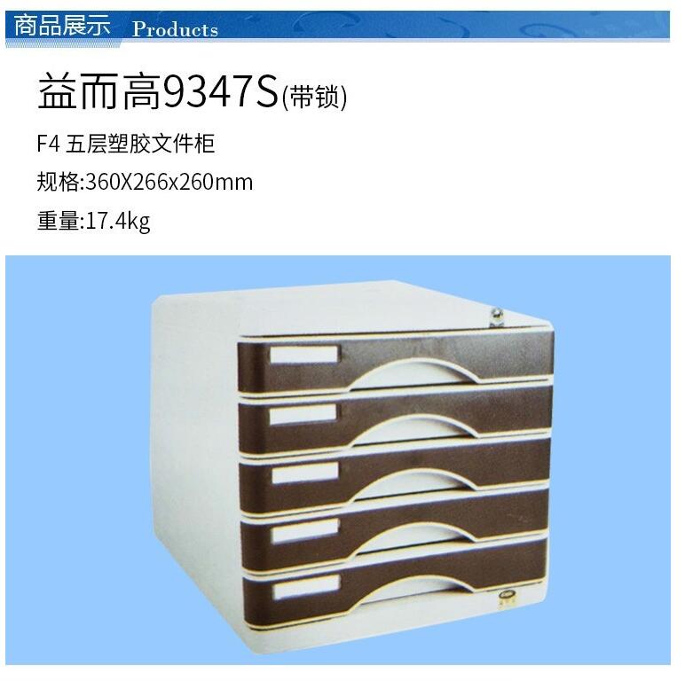 益而高文件柜 9347S 五層塑膠文件柜帶鎖灰色 單位:個(gè)