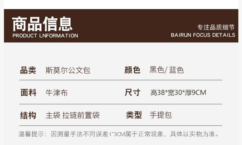 斯莫爾豎款手提包 SL-523 黑色 雙層大容量公文包 單位:個(gè)