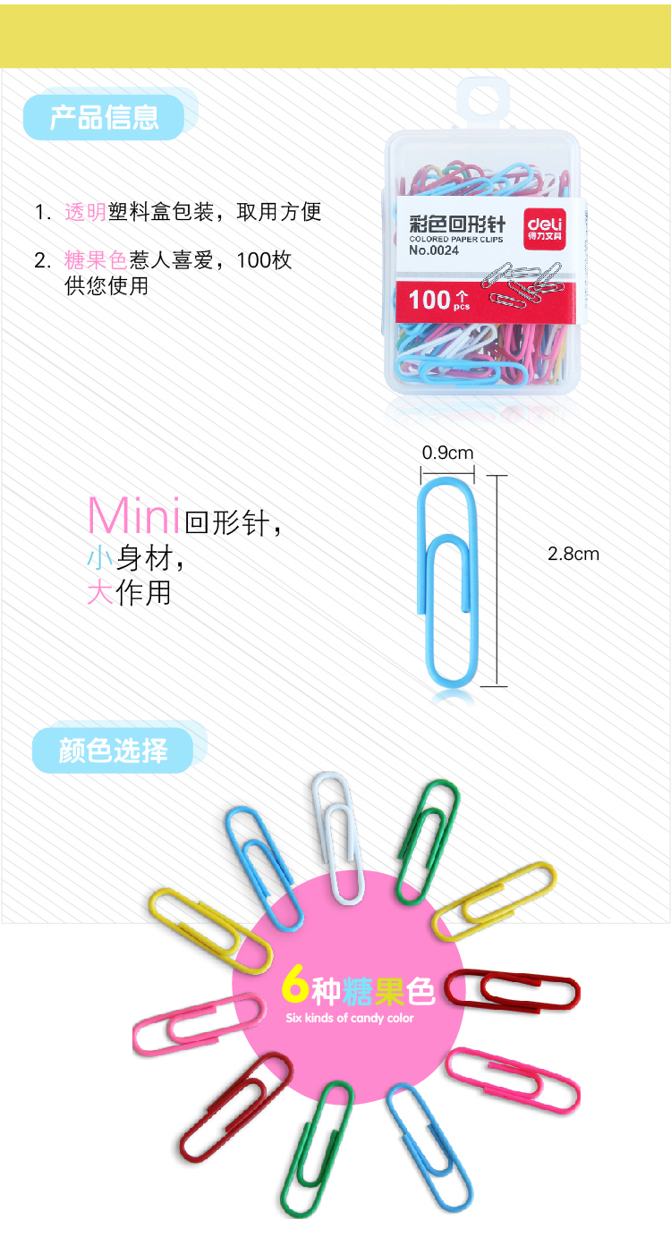 得力回形針 0024 彩色回形針 多色混合 單位:盒