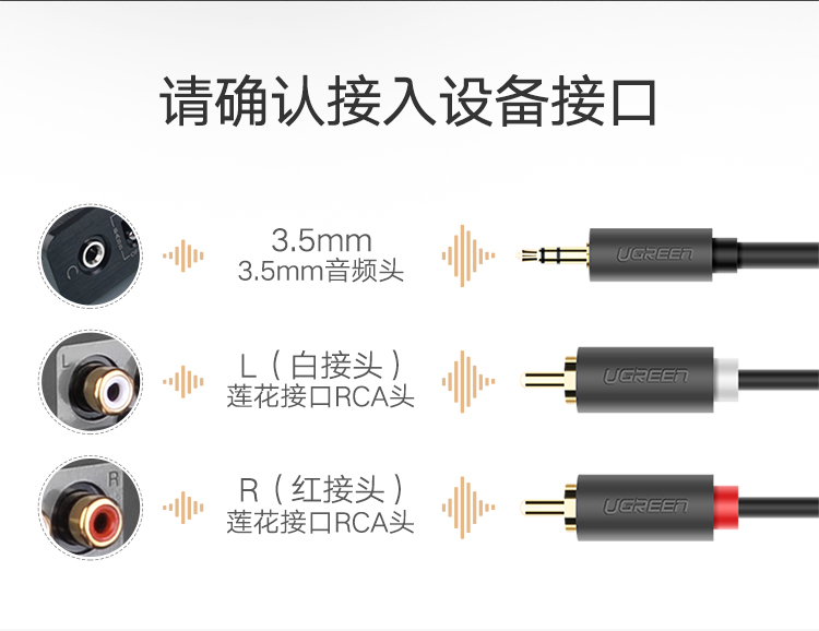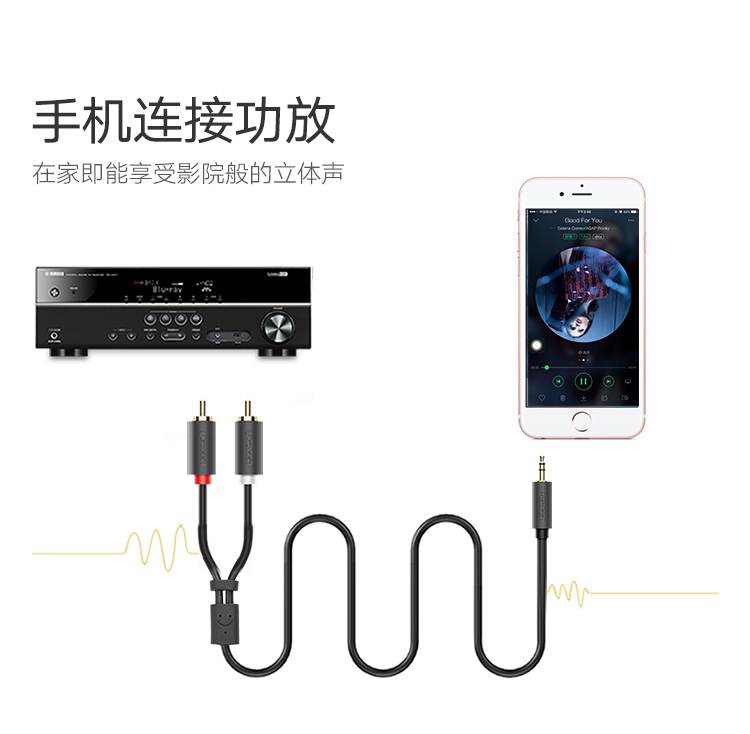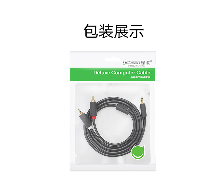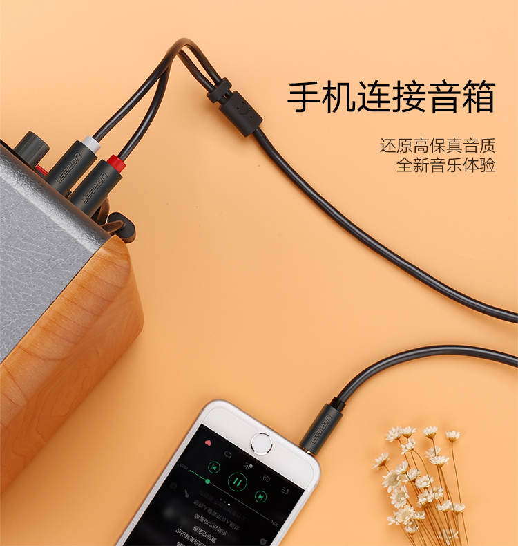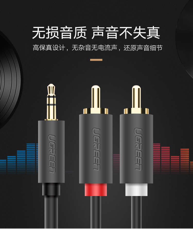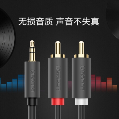 綠聯(lián) AV102 3.5mm公轉(zhuǎn)2RCA公音頻線手機電腦電視連接音響箱轉(zhuǎn)換線 8米 黑色 單位:根