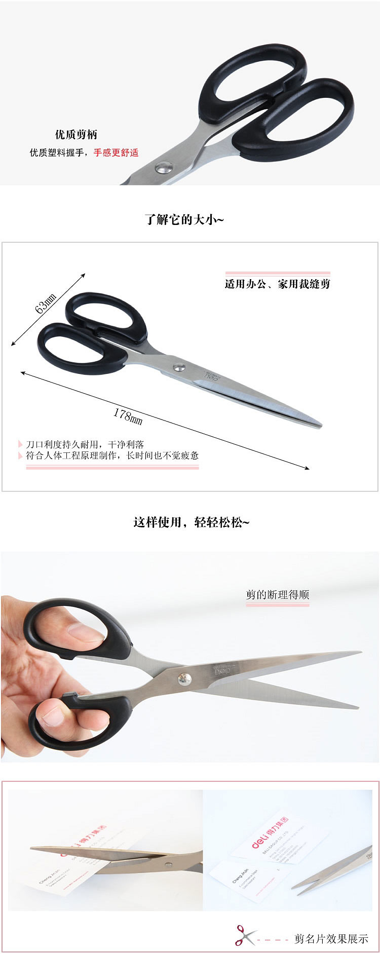 得力剪刀 6009 180mm辦公家用生活剪刀 顏色隨機(jī) 單位:把