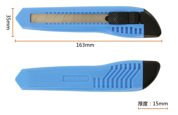 得力(deli)2003 大號耐用塑料殼美工刀/裁紙刀 (黃、藍混色隨機發(fā))