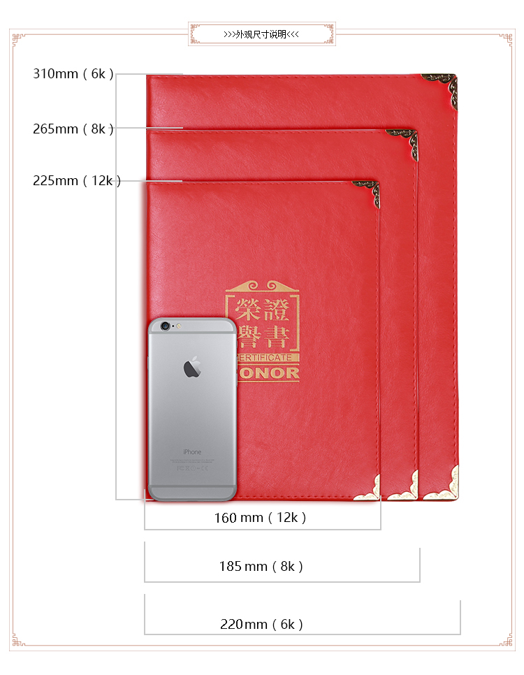 致詳 3308 榮譽證書 包角燙金 12開 單位:個