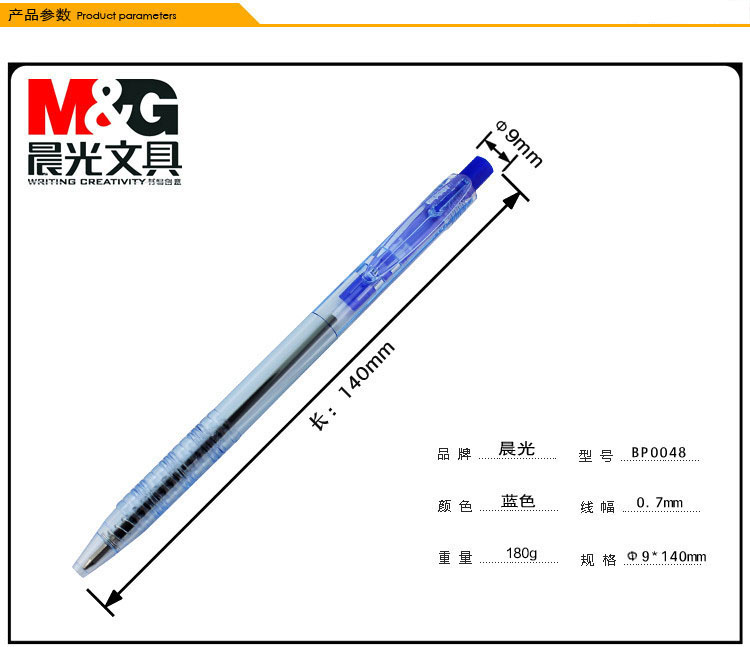 晨光 BP0048按動(dòng)圓珠筆油筆0.7mm 藍(lán)色 24支/盒