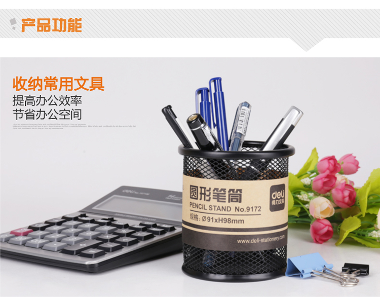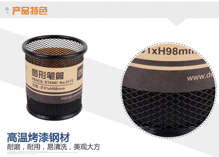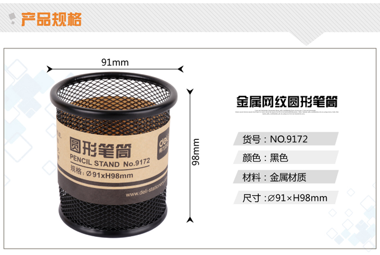 得力筆筒 9172 金屬網(wǎng)紋圓形筆筒 單位:個(gè)