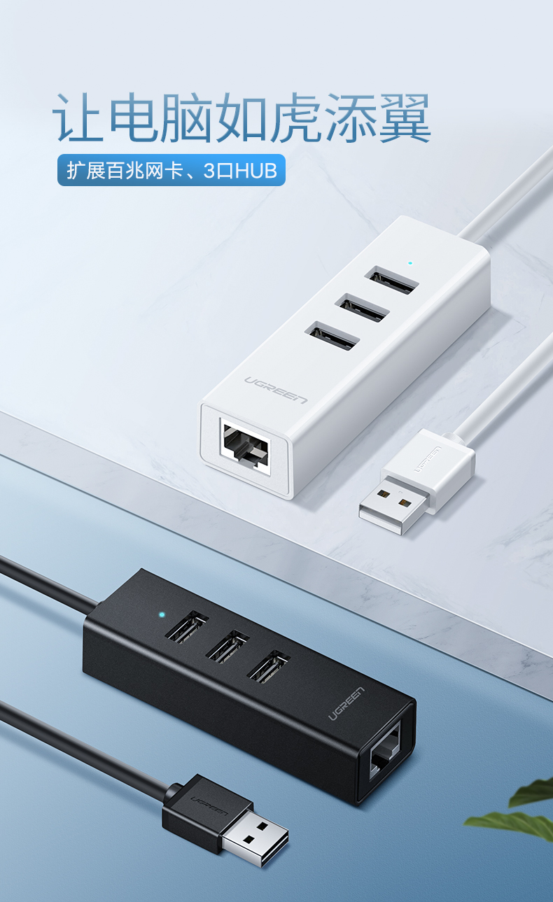 綠聯(lián) CR129 USB百兆有線網(wǎng)卡RJ45網(wǎng)口轉(zhuǎn)換器 適用筆記本電腦網(wǎng)線接口拓展 黑色 單個裝