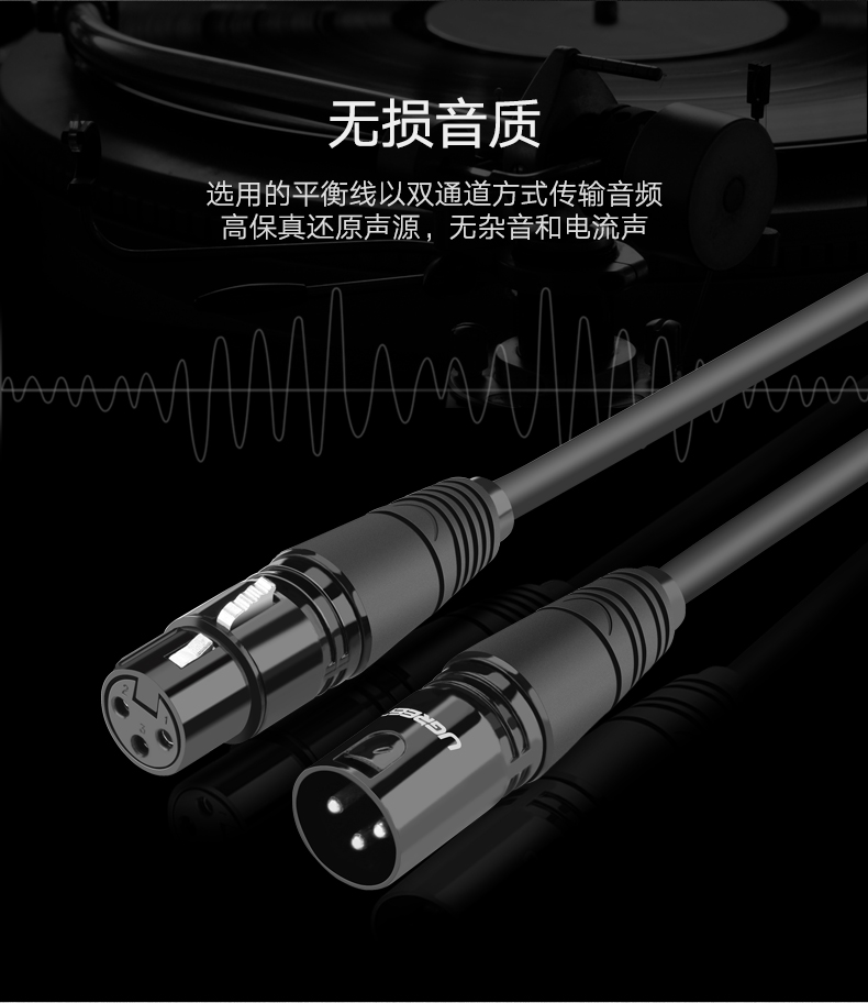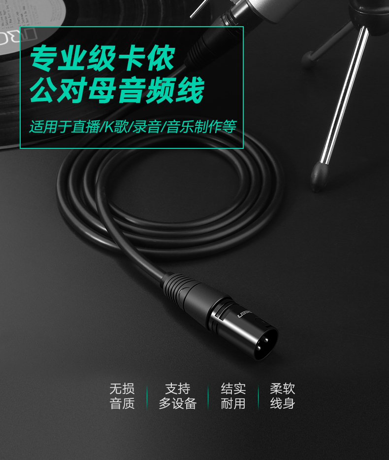 綠聯(lián) AV130 卡儂公對母話筒音頻延長線 卡農(nóng)口三芯XLR平衡線1.5米 黑色 單位:根
