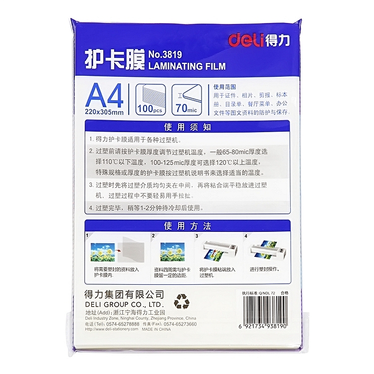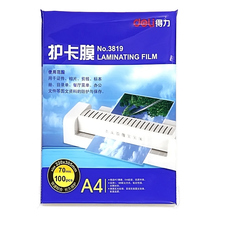 得力塑封膜 3819 A4 220*305mm 100張/包 單位:包