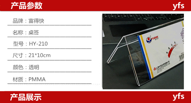 富得快桌簽 HY-210 亞克力雙面三角架 桌簽名牌桌牌21X10cm 單位:個