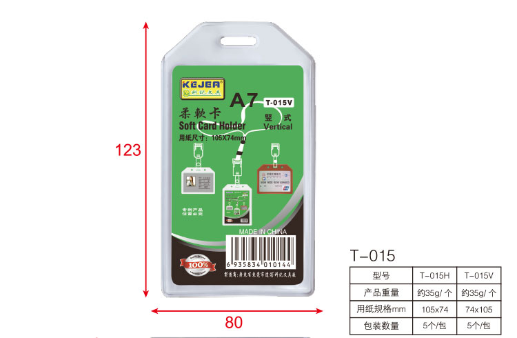 科記 厚款柔軟卡套T-015V 豎 不配繩 5個/包 單位:包
