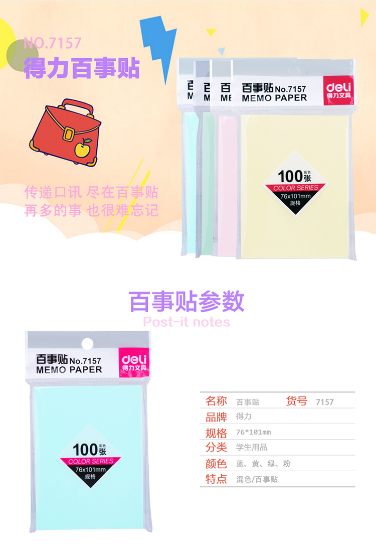 得力便簽紙 7157 便簽紙報事貼 單位:包