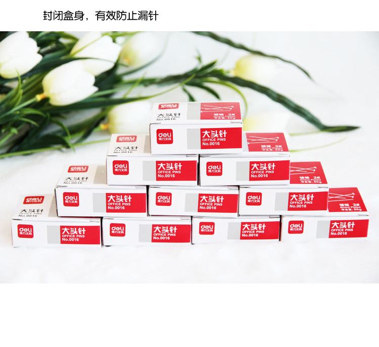 得力大頭針 0016 2#24mm大頭針財(cái)務(wù)文具辦公用品(50克/盒) 單位:10盒/包