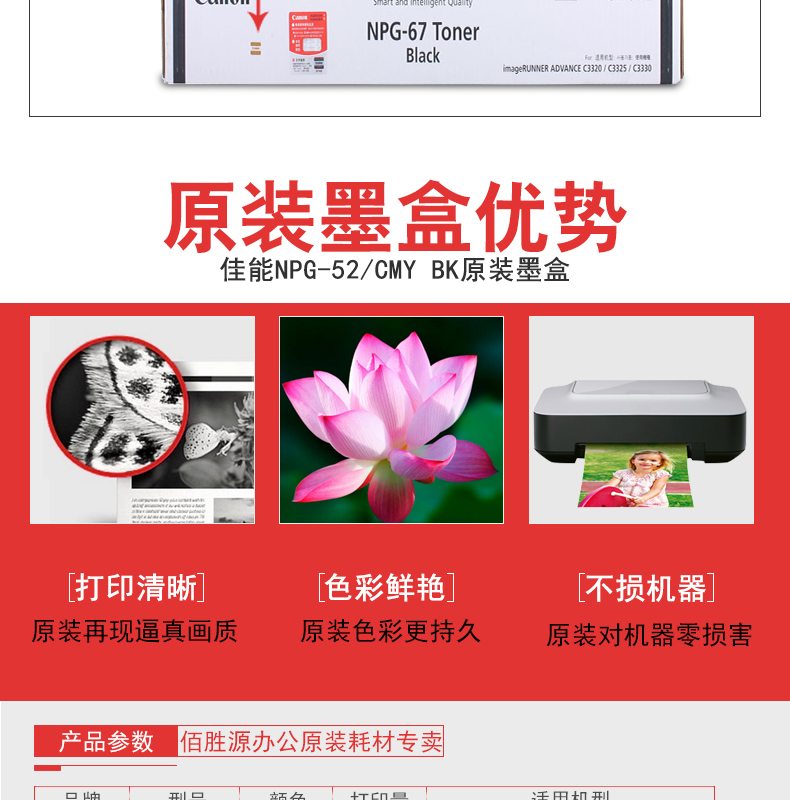 佳能墨粉 NPG-67 黃色墨粉 適用:C3020/C3320/C3520/C3525 單位:支