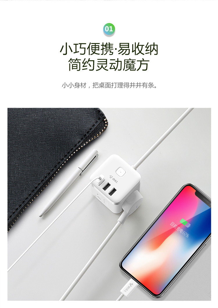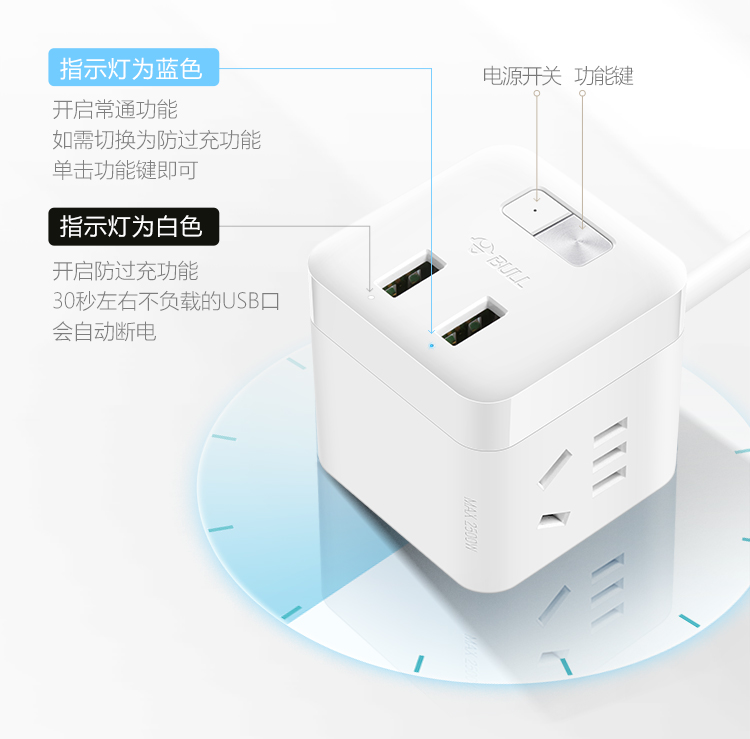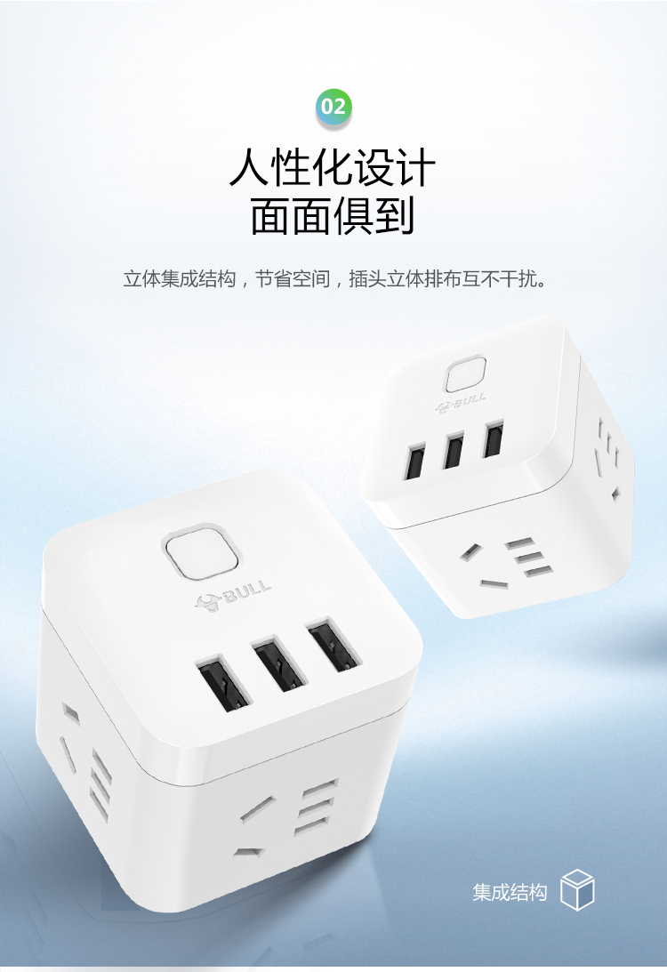 公牛插座 GN-U303H 魔方USB插座 3USB接口+3插孔全長(zhǎng)3米 單位:個(gè)