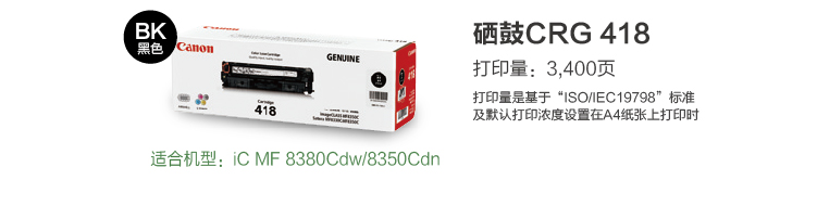 佳能硒鼓 CRG-418BK 黑色硒鼓(適用:iC MF8350cdn 725cdn 727cdw) 單位:支