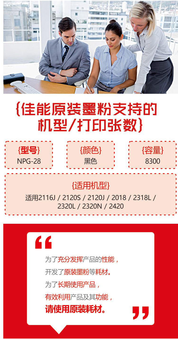 佳能墨粉 NPG-28 黑色墨粉(適用:2116J/2120S/2120J/2018/2318L/2320L/2320N/2420) 單位:支