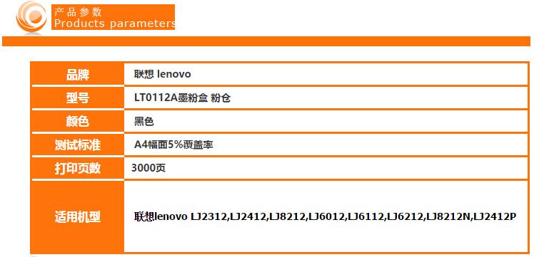 聯(lián)想 LT0112A 黑色粉盒 適用于LJ2312 2412 8212 6012 6112 6112