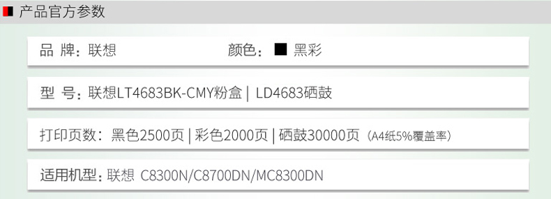 聯(lián)想 LT4683Y 黃色粉盒 適用聯(lián)想C8300d 8300dn C8700dn