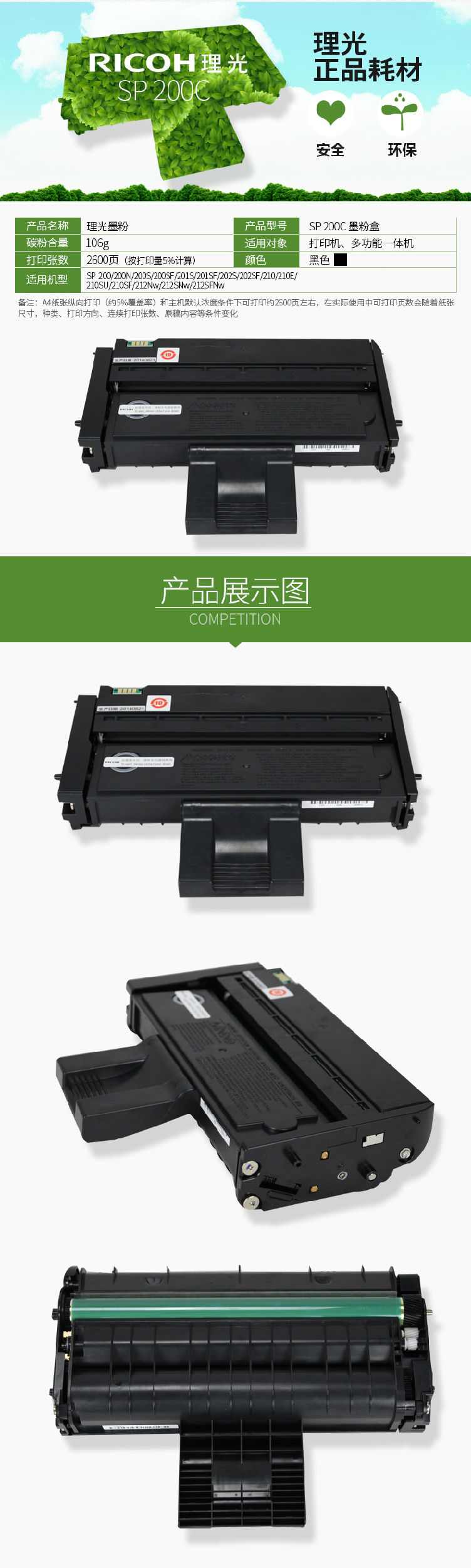 理光墨粉 SP200C 黑色 適用于SP200/201S/210/212SNw/221S 單位:支