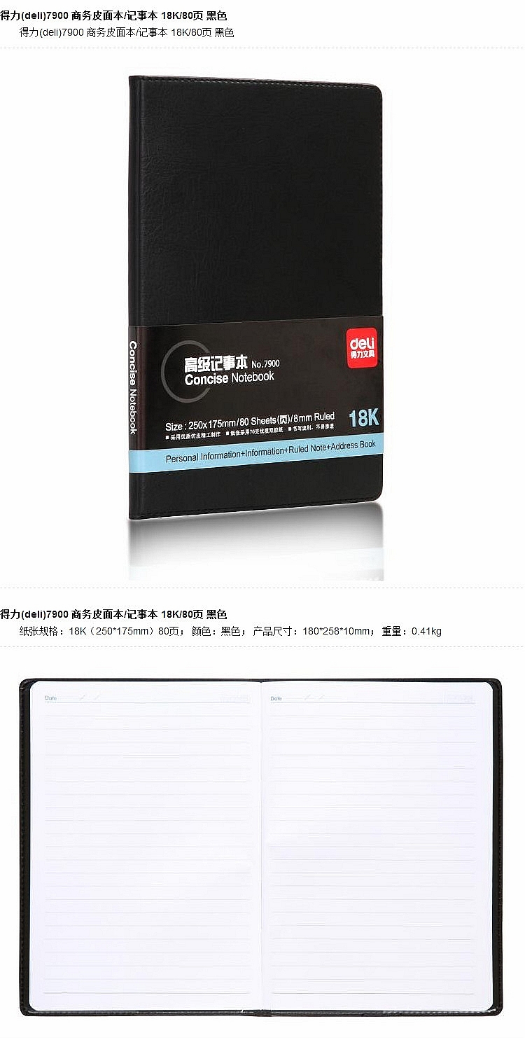 得力仿皮本 7900 商務(wù)皮面本/記事本 18K/80頁 黑色 單位:本