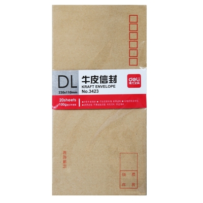 得力牛皮信封 3423 5號 郵局標(biāo)準(zhǔn)信封220*110mm 20張 單位:包