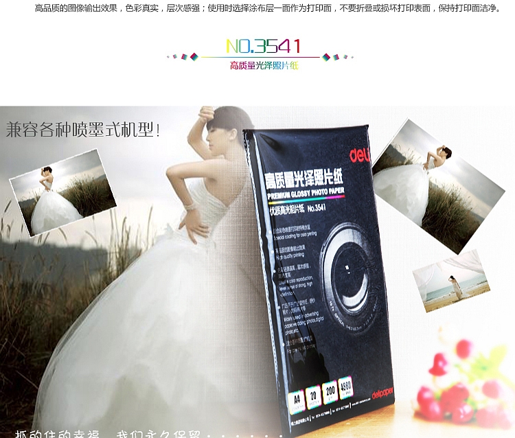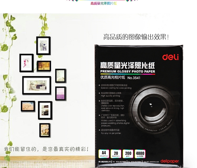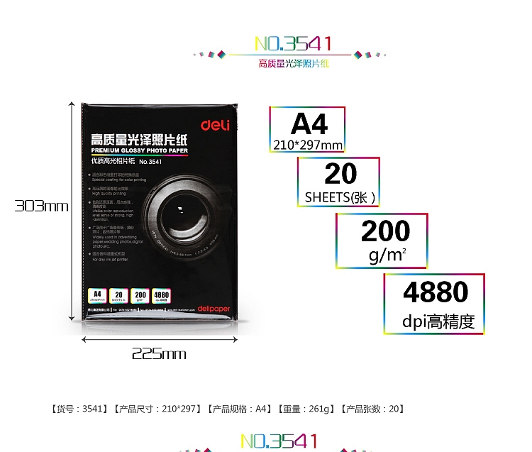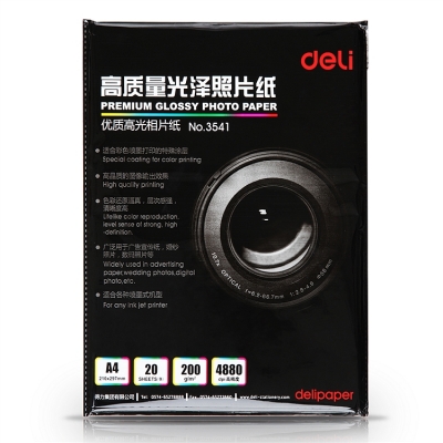 得力照片紙 3541 高光A4規(guī)格200g 20張/包 單位:包