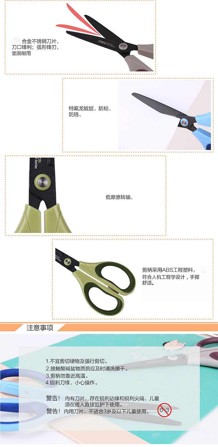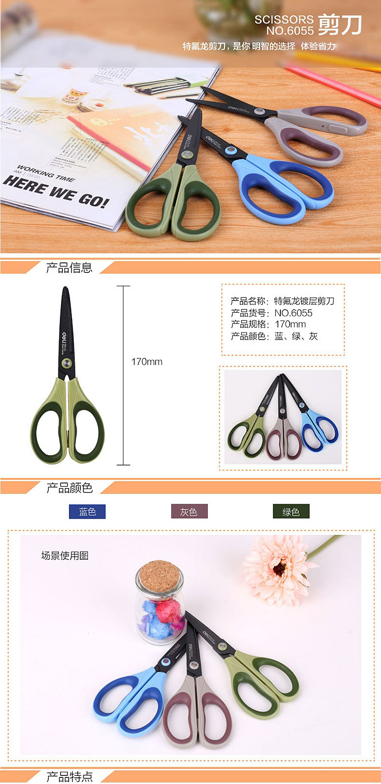 得力剪刀 6055 特氟龍材質(zhì)防粘不銹鋼剪刀/顏色隨機(jī) 單位:把
