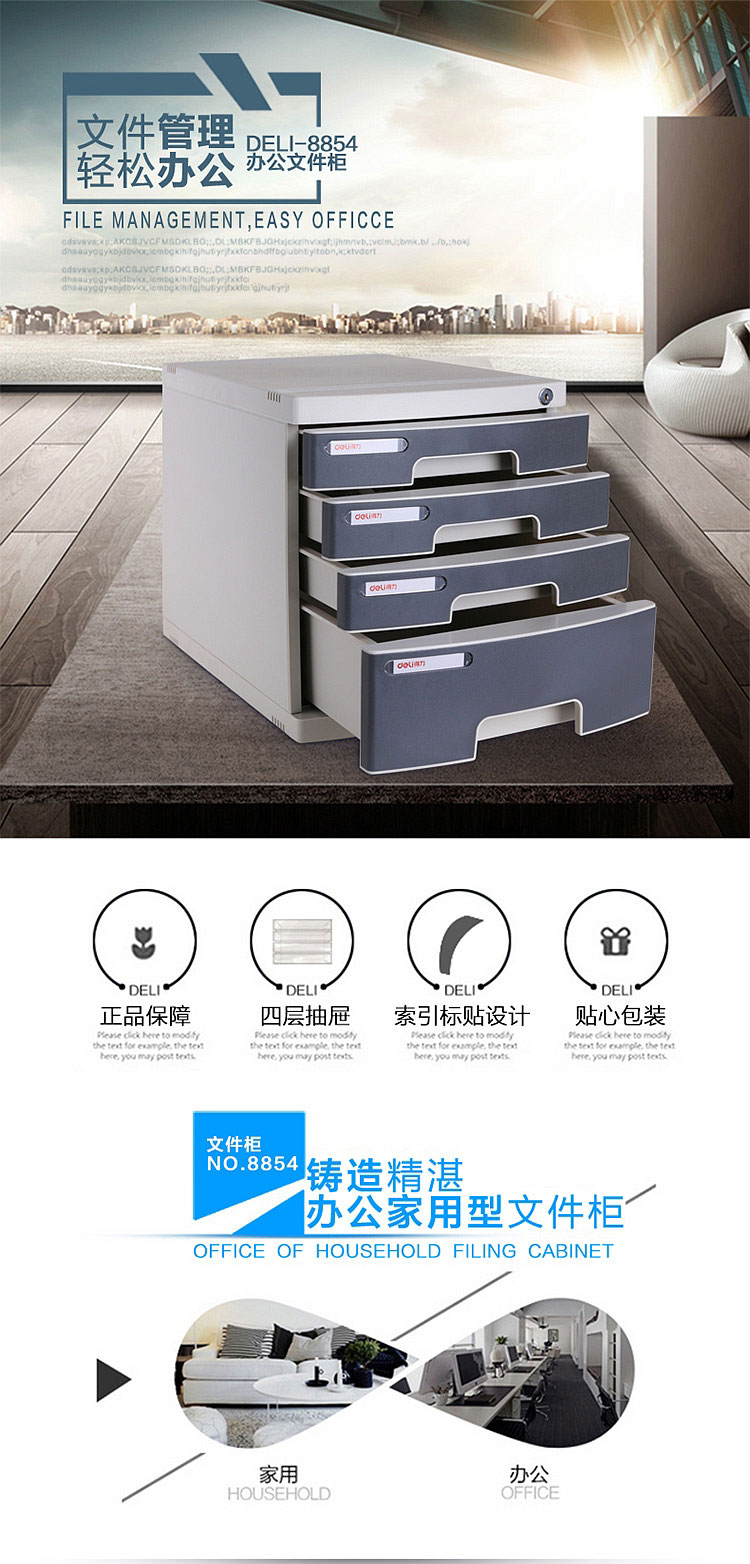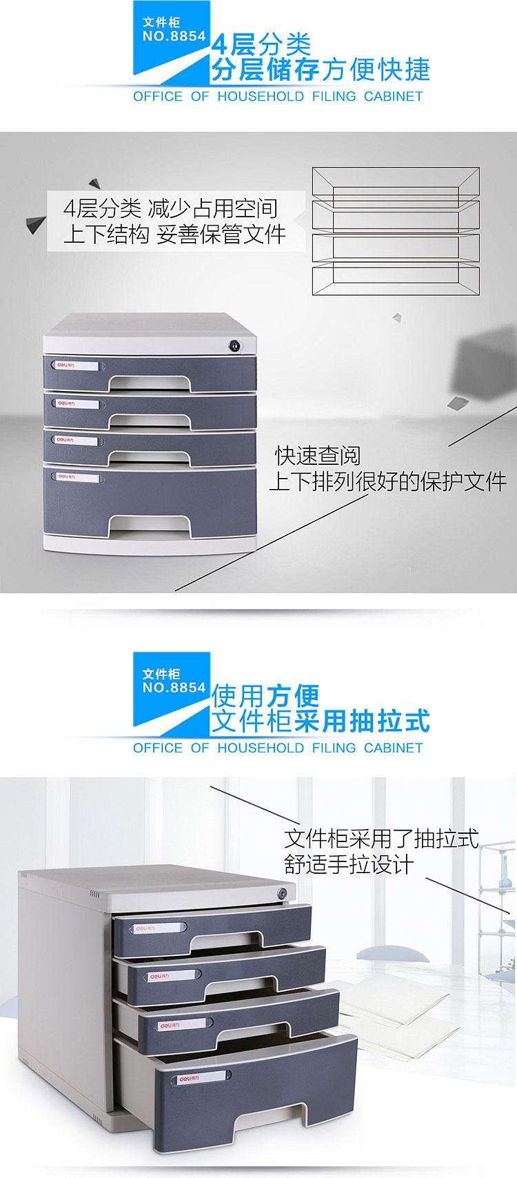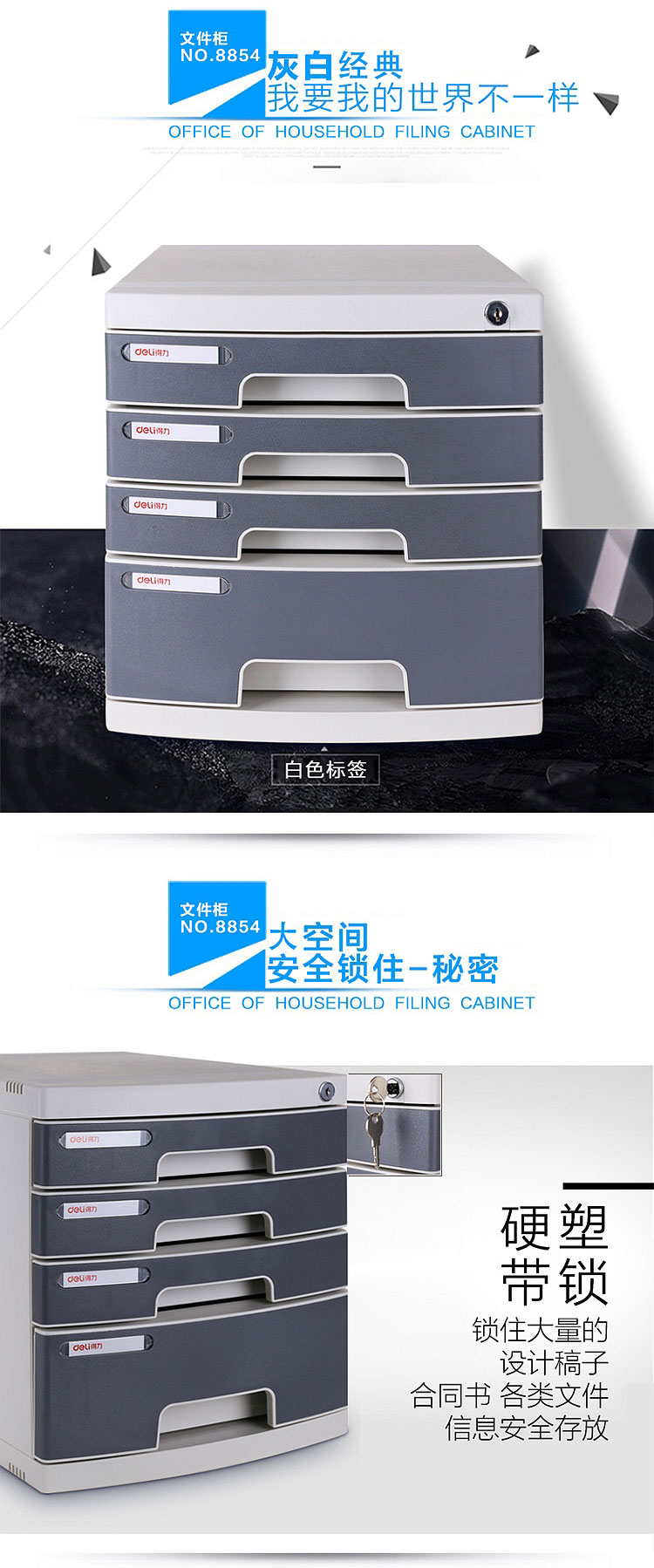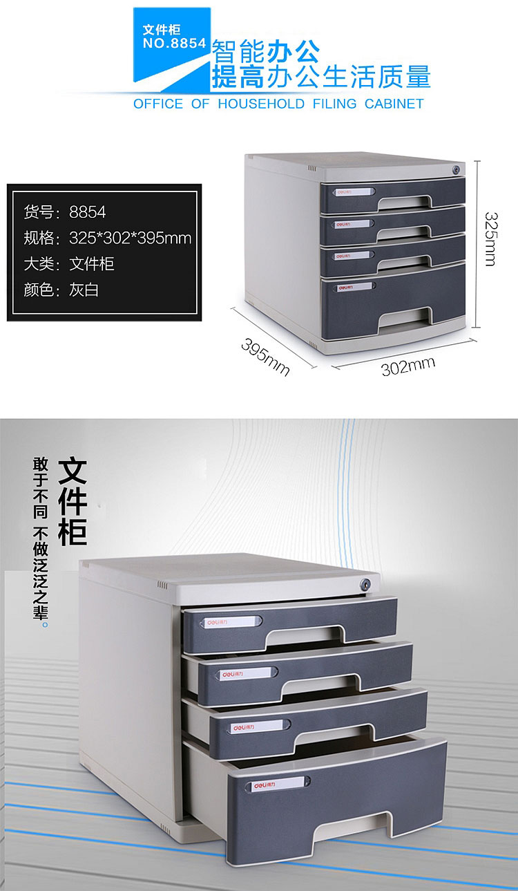 得力文件柜 8854 四層塑料文件柜(帶鎖)灰色 單位:個(gè)