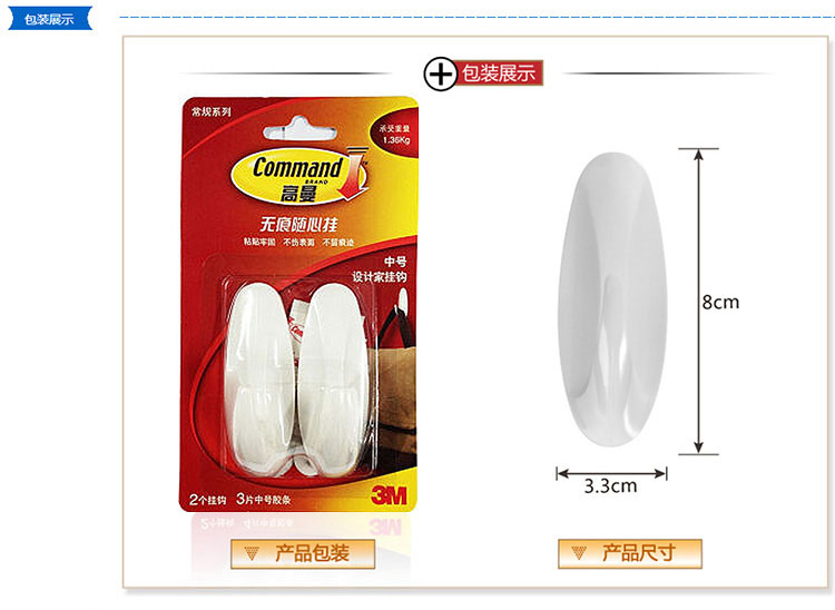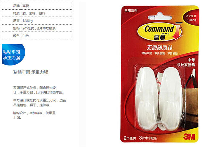 3M無痕粘鉤掛鉤 中號 輕松取不留痕 單位:卡