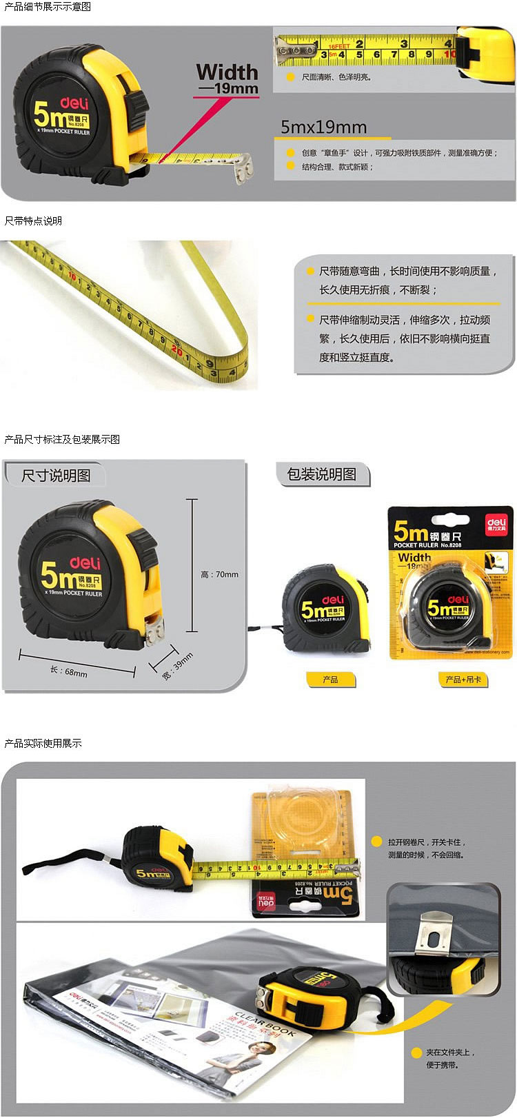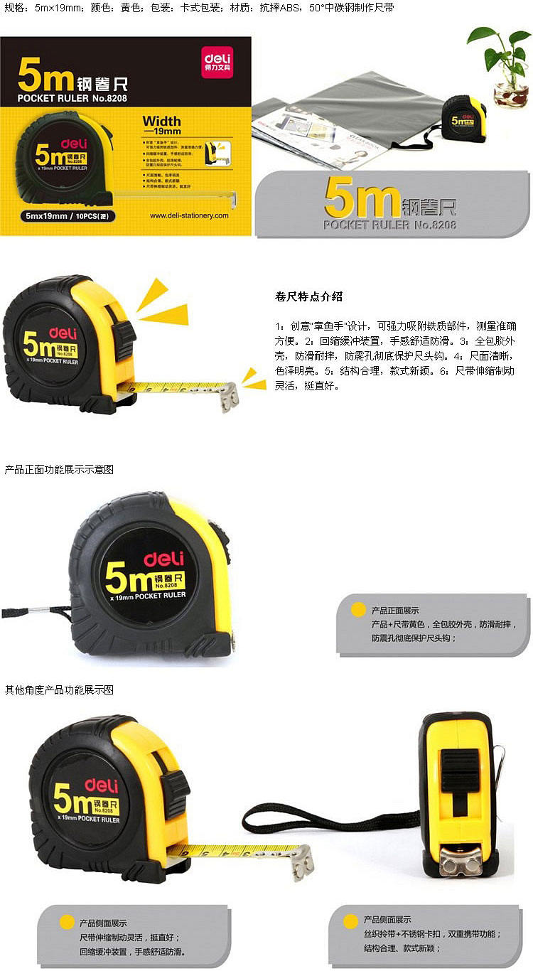 得力卷尺 8208 5米全包膠鋼卷尺 單位:個