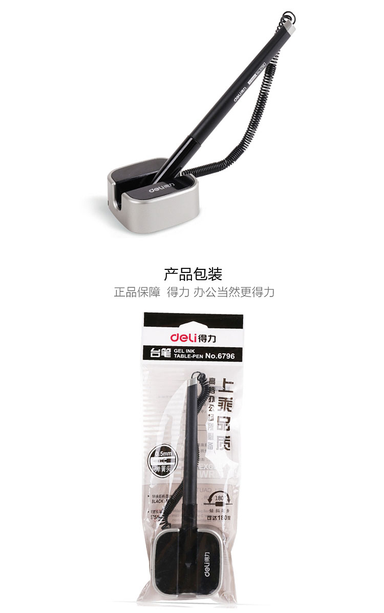 得力 6796 柜臺(tái)桌面粘貼固定中性筆簽字筆 黑色 單支裝