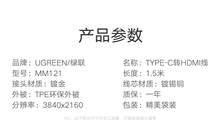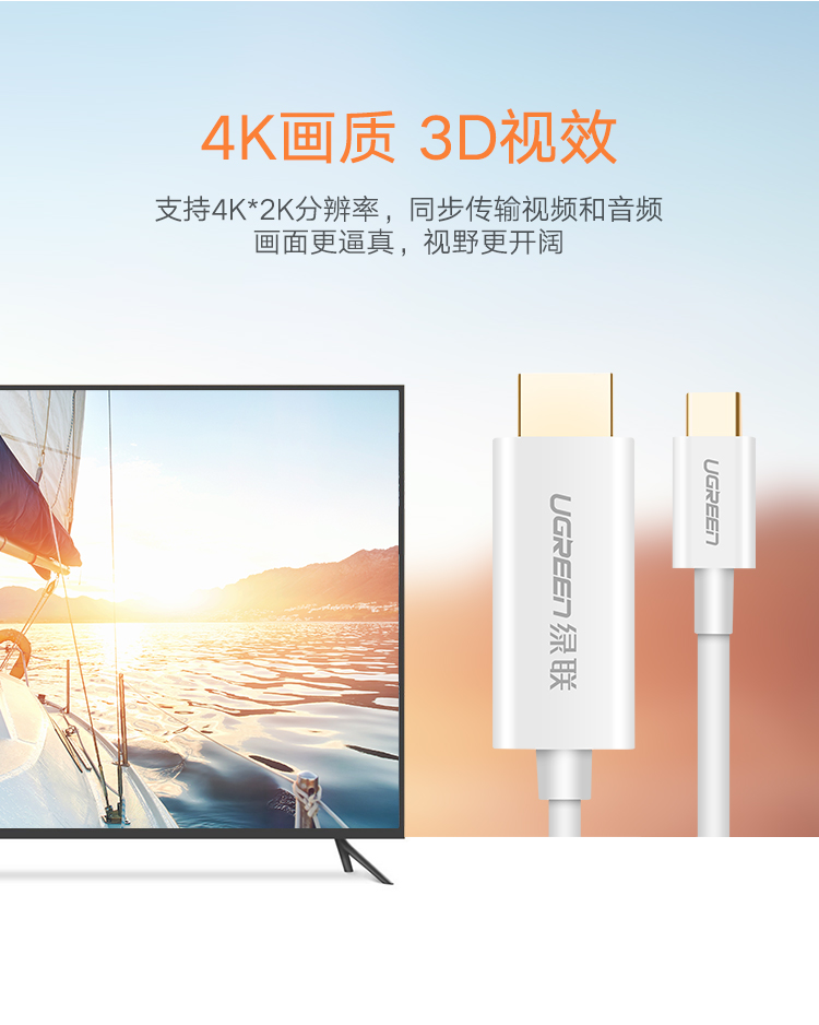 綠聯(lián) MM121 擴展塢 適用蘋果華為設(shè)備 USB-C轉(zhuǎn)HDMI 高清4K視頻傳輸 白色 單個裝